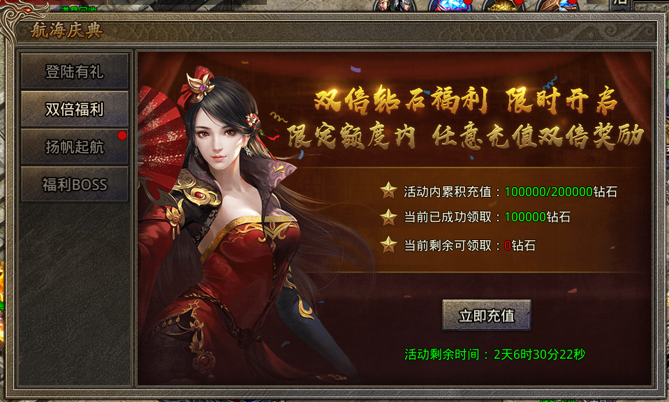 活动三天总共2000元额度的双倍钻石奖励