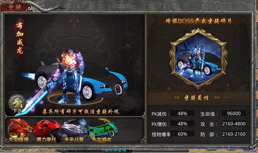 新增坐骑激活界面,入口位于右下角坐骑图标内-兽骑页签