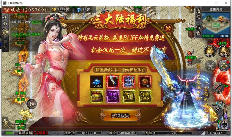 界面入口:三大陆主城安全区福利官NPC