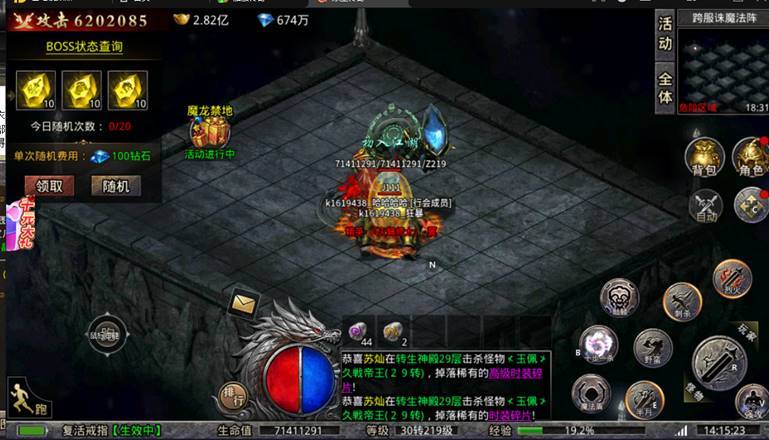 每日9点.12点.15点.18点.21点.24点整统一刷新BOSS,每只BOSS对应爆出2个部位战神成品1阶装备(爆率低)或不等数量的碎片材料(必爆)及五大陆专属神魂装备(爆率一般)