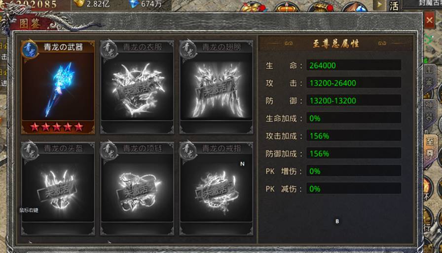 包含部位:武器、衣服、翅膀、头盔、项链、戒指、腰带、靴子八个图鉴部位,