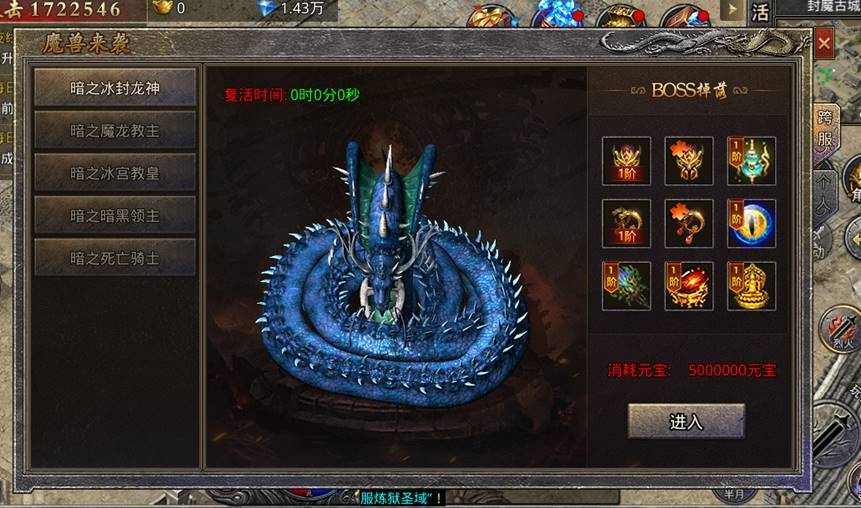 一、区服开放至120天新增:远古战神、魔兽来袭、至尊图鉴系统