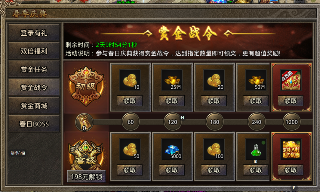活动期间,累计获得一定数量赏金战令即可领取奖励,解锁高级战令可额外再领取高级战令奖励