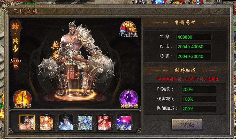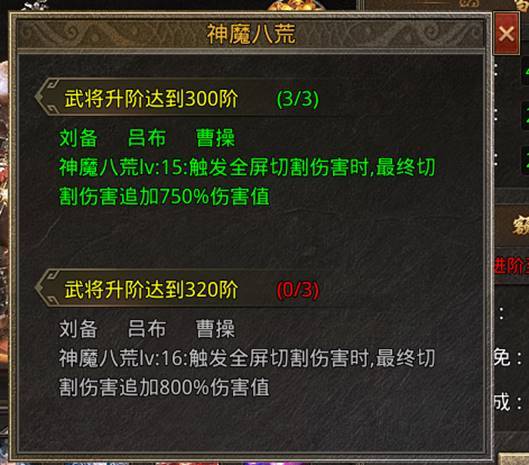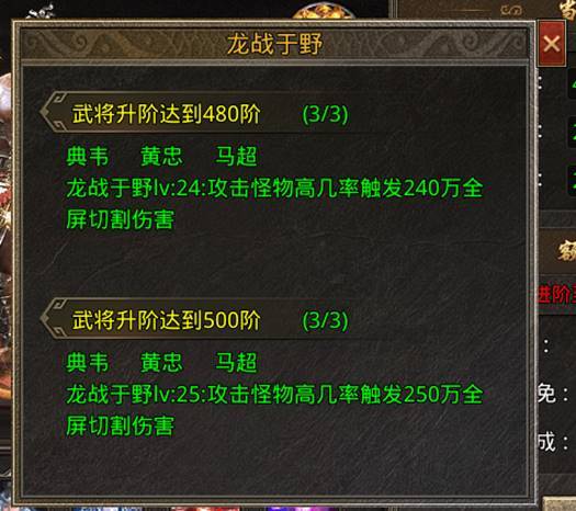 龙战于野:全屏切割伤害,最高25级。 神魔八荒:全屏切割伤害加成,最高25级。