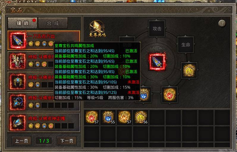 宝石系统新增至尊宝石合成+至尊宝石共鸣系统。