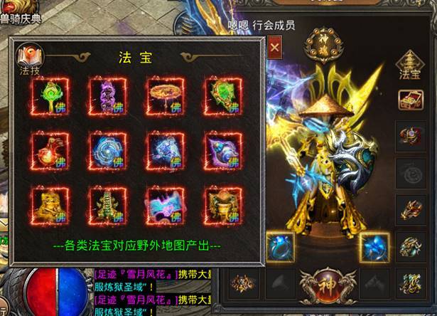 法宝装备界面及专属技能说明: