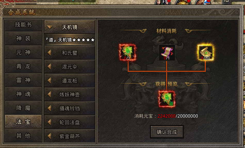 入口:右下角合成图标内-法宝页签(开服等于或大于125天显示)