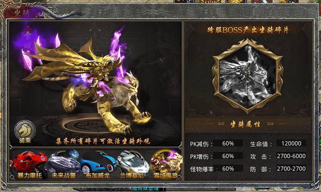 新增坐骑激活界面,入口位于右下角坐骑图标内-兽骑页签