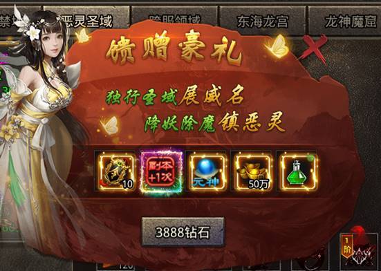 9888钻石档:讨伐令*10、恶灵副本挑战次数+1、恶灵神性丹*1、200万绑定元宝、体力值药水*1