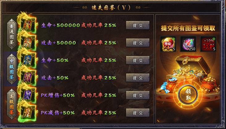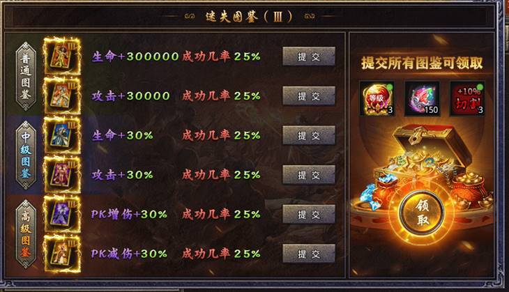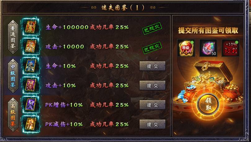 2.迷失图鉴:提交对应图鉴可获取对应属性加成,提交全部图鉴可额外领取图鉴奖励。