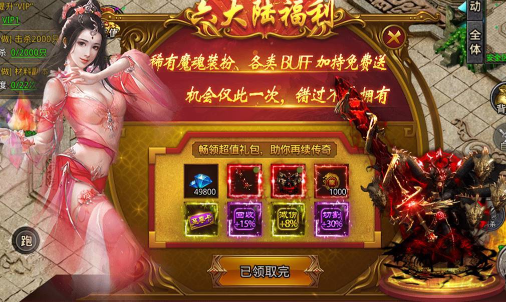 六大陆福利界面内容: