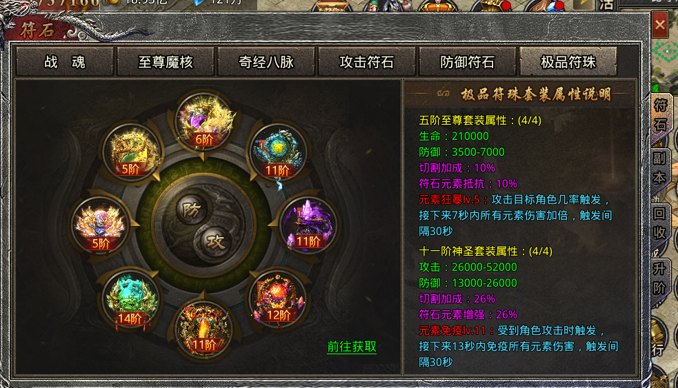 2.2-18阶极品符珠进阶界面--开服第180天显示、入口位于右下角符石图标内升阶页签