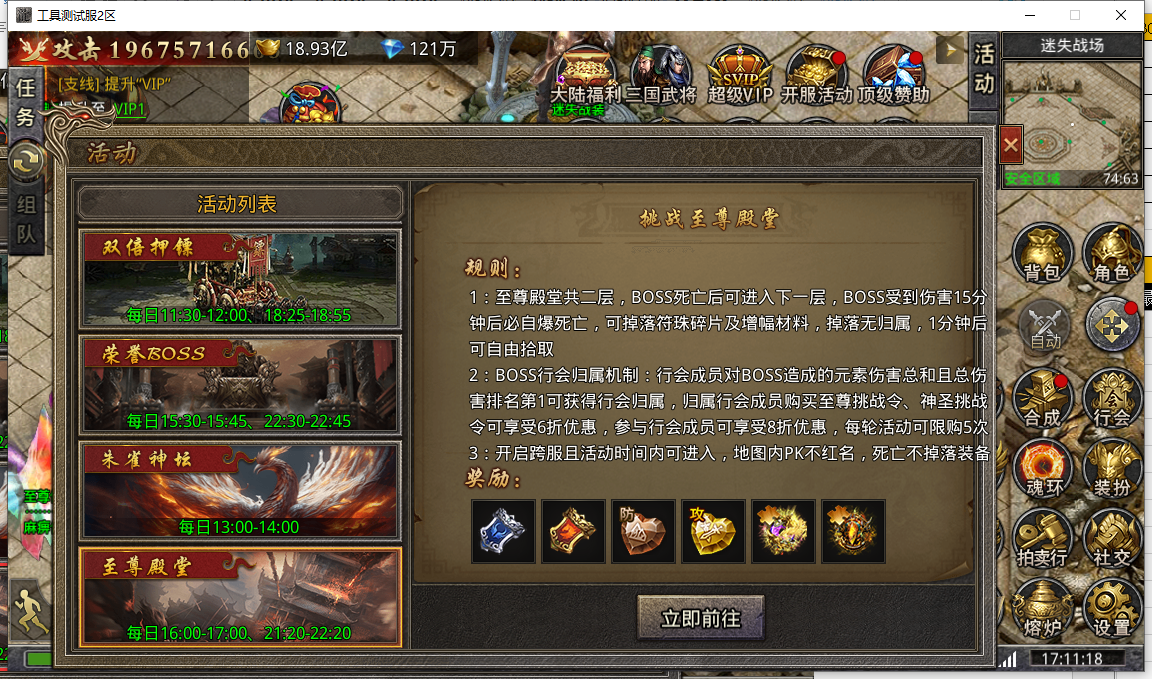 5.新增至尊殿堂活动--开服第180天显示、入口位于右上角活动按钮图标内