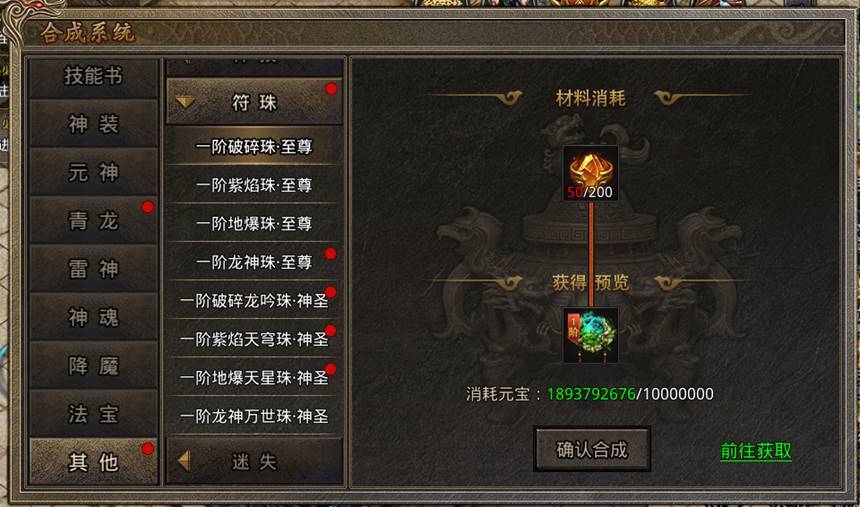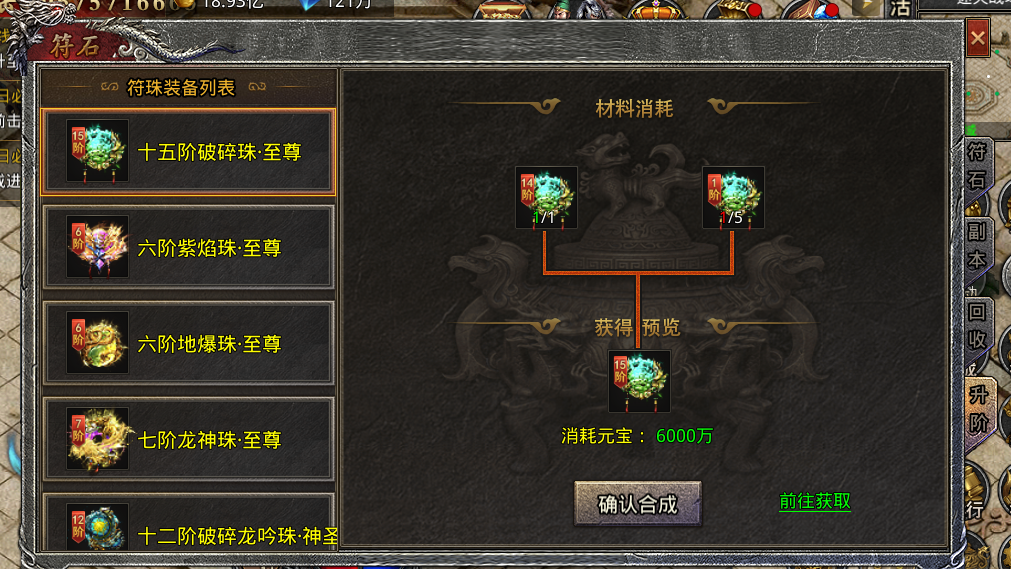 1.1阶极品符珠合成界面-开服第180天显示、入口位于右下角合成图标内