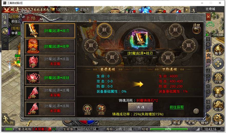 新增对应铸魂碎片,对应大陆BOSS可爆出,每10个碎片+元宝可兑换1颗铸魂石。双击碎片道具可弹出兑换界面