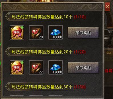 l 对应大陆战装铸魂提升到佛品孔位达到一定数量可获得属性+物品奖励: