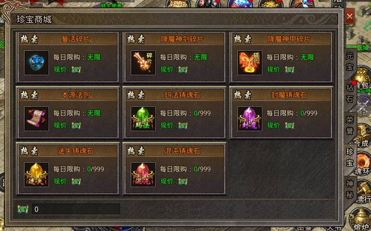 l 珍宝商城内新增铸魂材料:玛法铸魂石(开区31天显示)、封魔铸魂石(开区90天显示)、迷失铸魂石(开区210天显示)、混沌铸魂石(开区260天显示)