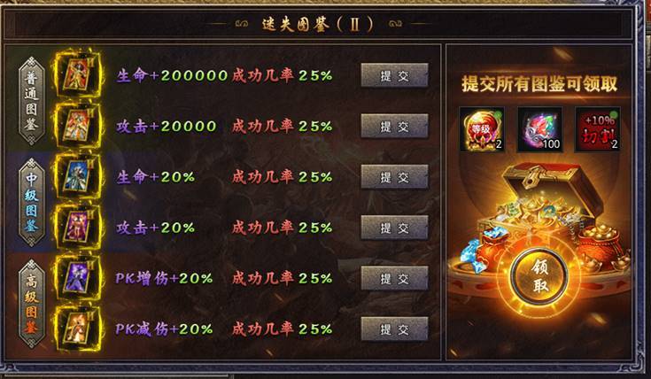 2.迷失图鉴:提交对应图鉴可获取对应属性加成,提交全部图鉴可额外领取图鉴奖励。