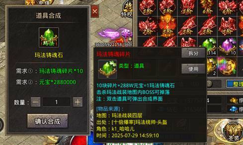 新增对应铸魂碎片,对应大陆BOSS可爆出,每10个碎片+元宝可兑换1颗铸魂石。双击碎片道具可弹出兑换界面