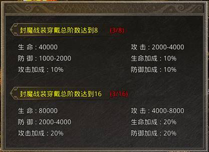 对应战装阶数之和达到一定等级可激活额外属性加成且自身穿戴总阶数高于对方时,攻击可获得破复活几率、破复活抵抗、最终伤害强力属性。